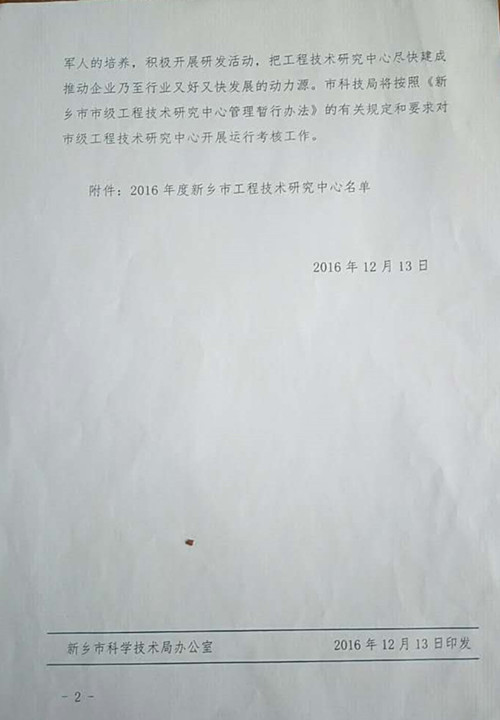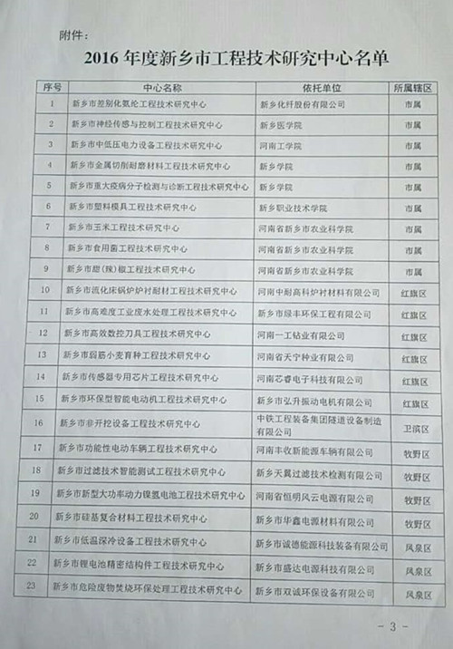 新鄉市科學技術局——關于認定2016年度新鄉市工程技術研究中心的通知